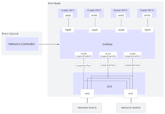 Flow can also manage VLAN-backed networks via the brAtlas bridge. This causes there to be a distinction between two types of VLAN-backed networks. The first is a VLAN Basic network. VLAN Basic networks are not managed by Flow. They are the standard AHV Subnets that exist on the virtual switch vs0 by way of the individual br0 bridges. This would include the management network used by AHV, the CVMs, and Prism Central. By default, VLAN-backed networks are created as VLAN Basic.